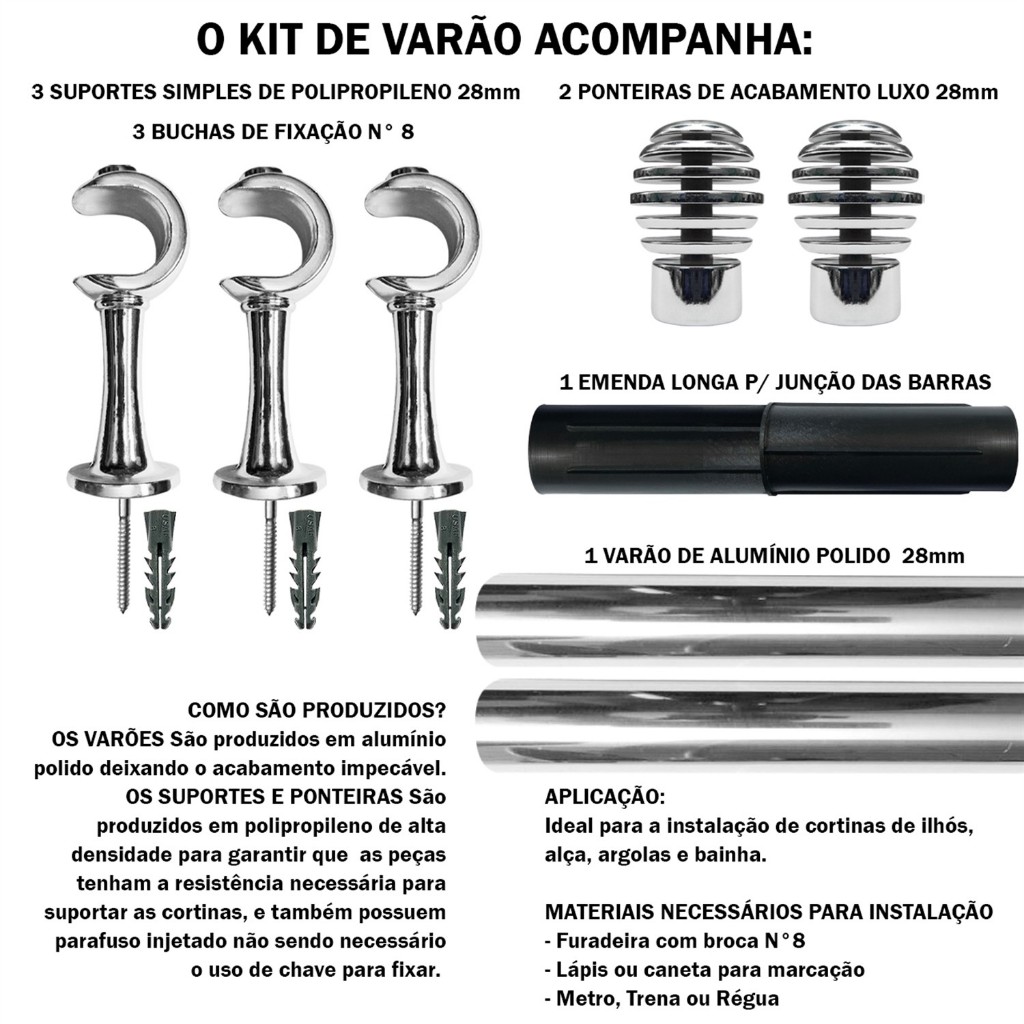 Varão Luxo Cortina Blackout 1,50m Ponteira Esfera 28mm