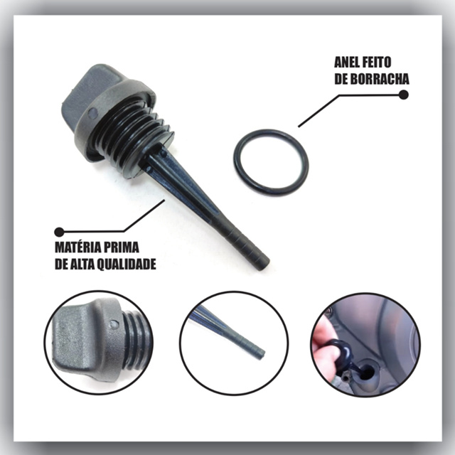 Para Sua Segurança: Produto Novo e Acompanha Nota Fiscal DESCRIÇÃO: - FACÍL ENCAIXE - SIMPLES INSTALAÇÃO - PRODUTO DE EXCELENTE QUALIDADE - MODELO DA FOTO APLICAÇÃO: - YAMAHA YBR 125 (TODAS) - YAMAHA FAZER 150 (TODAS) - YAMAHA TENERE 250 (TODAS) - YAMAHA FAZER 250 (2005 Até 2017) - YAMAHA LANDER 250 Até 2019 - YAMAHA FACTOR 125 E 150 (TODAS) - YAMAHA XTZ 125 (TODAS) ACOMPANHA - 1 MEDIDOR DO NÍVEL DO ÓLEO - 1 ANEL DE VEDAÇÃO DE BORRACHA IMPORTANTE: - Garantia 3 Meses contra defeitos de fabricação. - Não nos responsabilizamos pelo mau uso do produto. - Recomendamos que a troca/instalação seja realizada por um profissional qualificado.