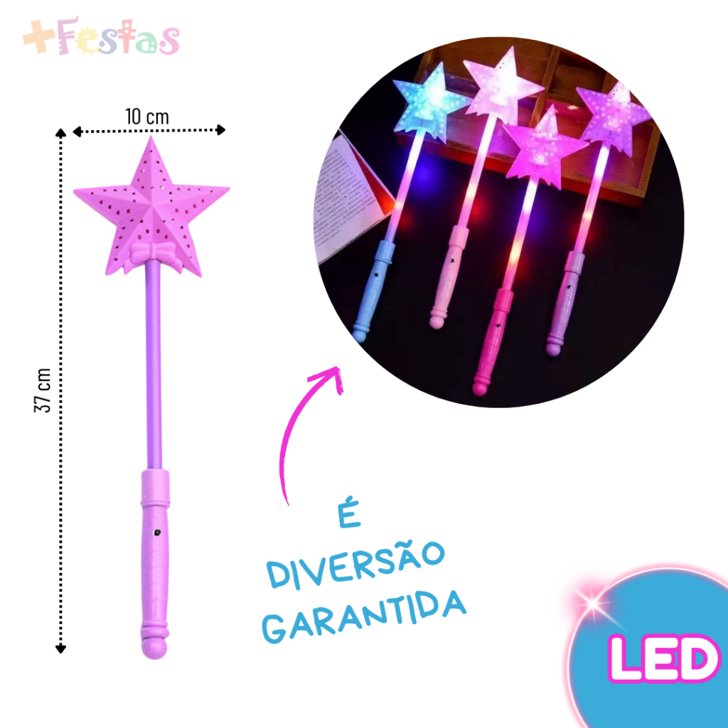 Varinha Mágica LED Fantasia Princesa Festa Fada Infantil