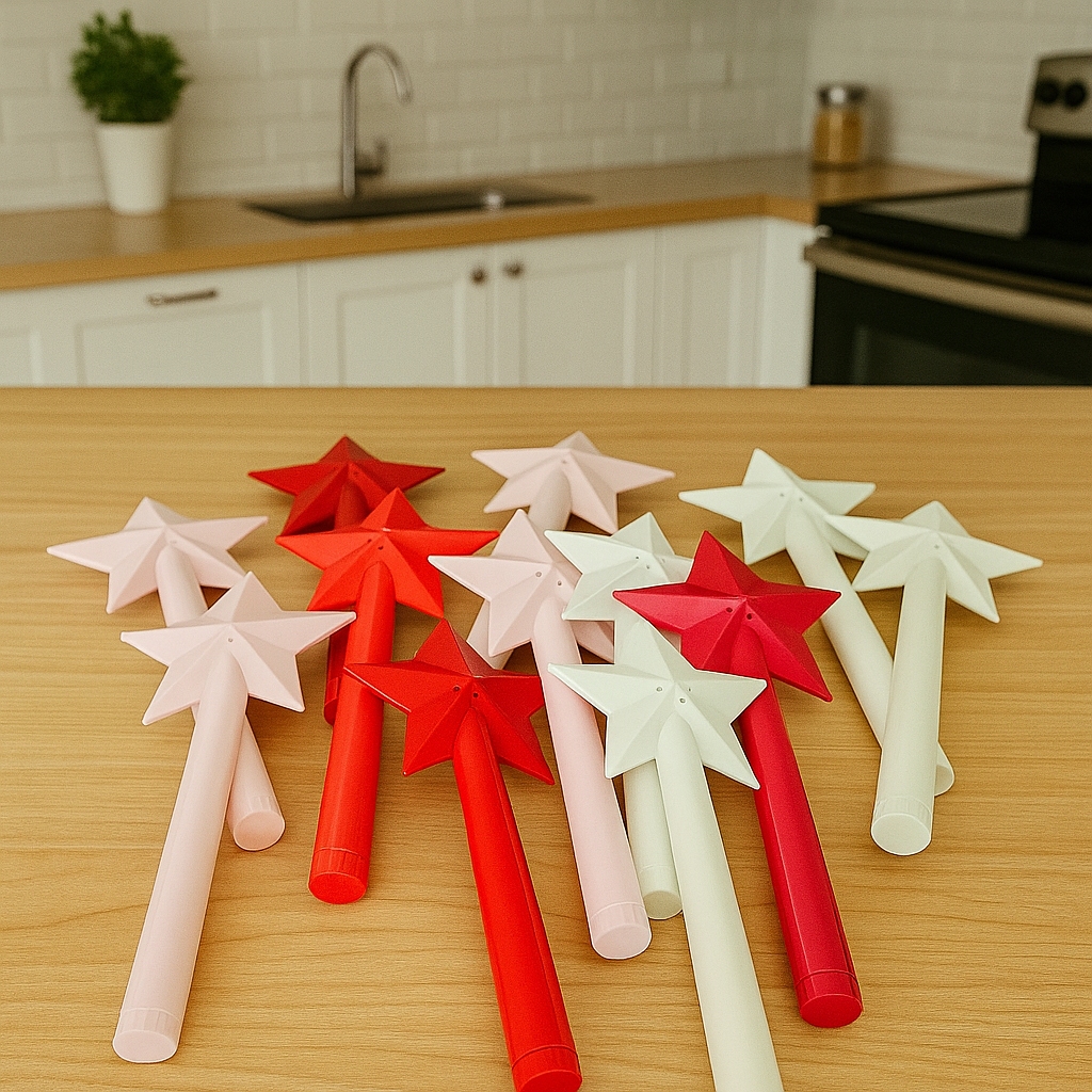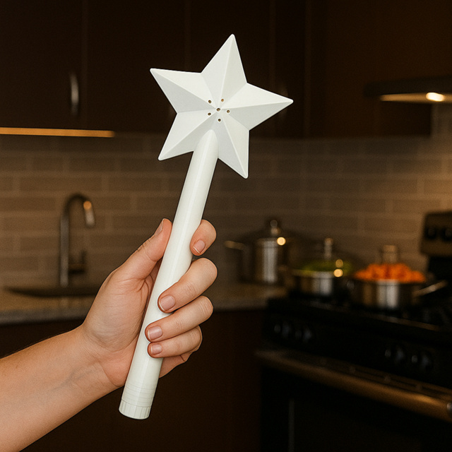 Porta Temperos Único Modelo Varinha Mágica tamanho ideal para você um porta temperos que combina sal e pimenta em uma varinha mágica. Saleiro de Varinha Mágica — Praticidade e charme para temperar suas refeições! Sabe aquele momento de temperar a salada? Agora ele vai ficar muito mais divertido! Com esse saleiro de varinha, você tempera de um jeito prático e ainda se sente fazendo feitiço na cozinha. É só dar uma “encantada” e pronto: sal na medida certa! ✅ Material: PLA Plástico Biodegradável NÃO TÓXICO ✅Medidas ✅Altura: 24cm ✅Largura da estrela: 10cm ✅ Uso: Ideal para saladas, pipoca, batatinhas ou para dar aquele toque mágico ✅ Fácil de repor o sal e limpar Um toque de magia para a sua cozinha — ou presenteie alguém que vai amar esse mimo! Se desejar outra cor além das disponíveis, mande mensagem antes para verificar disponibilidade. Benefícios: - Design criativo e encantador - Ideal para sal, açúcar, pimenta e outros temperos - Compacto, leve e fácil de usar - Ótimo para presentear fãs de magia e cozinha Leve mais magia para suas receitas e surpreenda seus convidados com esse item único. Garanta já o seu! Produto artesanal feito em impressora 3D, pode apresentar pequenas variações de textura. As cores podem variar de acordo com o lote do material. 📦 Envio rápido | ✅ Produção nacional ⚠️ Nota: Por serem fabricados com tecnologia de impressão 3D, é possível notar pequenas marcas naturais do processo e podendo ter pequenas alterações da tonalidade– detalhes que tornam cada peça única. Nota: As cores dos produtos podem variar ligeiramente das fotos devido à iluminação, configuração do monitor e disponibilidade dos insumos no estoque. Por exemplo, produtos podem vir em diferentes tons, como rosa claro e rosa escuro. DÚVIDAS? - Fale conosco e nossos consultores irão te atender imediatamente. - Leia toda a descrição antes de efetuar a sua compra. (Produto artesanal – Pequenas variações podem ocorrer, garantindo exclusividade!)