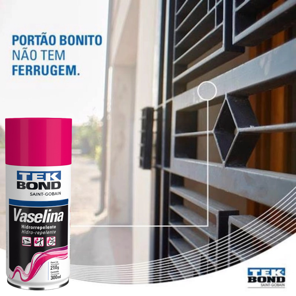 Este anúncio contém: 01 -TekSpray Vaselina Hidrorrepelente Informações do produto: Marca: TEK BOND Número de peça: 21571000488 Formato: Spray Volume: 300 ml Sobre o produto: É ideal para ser aplicada em superfícies que necessitam ser lubrificadas e protegidas. Desenvolvida com tecnologia de ponta, proporciona a formação de filme, o que garante máxima lubricidade, proteção e brilho. Pode ser utilizada em superfícies de plásticos, couro, vinil, borracha. É indicada também para ferragens, molinetes, carretilhas. Evita o desgaste e corrosão de peças de bicicletas, automóveis, barcos, residências, entre outros. Características: A Tekbond Spray Vaselina é formulada à base de parafinas selecionadas. Possui uma ação lubrificante em metais e plásticos, excelente resistência a umidade e proteção contra oxidação. Instruções de uso: Agite bem antes de usar. Pulverize as áreas desejadas a uma distância de aproximadamente 20 cm. Caso haja necessidade utilize o bico prolongador para locais de difícil acesso. Desligue equipamentos energizados para fazer a aplicação e espere a evaporação do gás para ligar o aparelho novamente. DADOS TÉCNICOS: Aparência (visual): Pastosa sobre pressão branca com odor característico, insolúvel em água. Densidade a 25°C: 0,81 g/cm³ Pressão interna: 0,41 MPa Taxa de pulveerização: ≥ 95 % Sobre a marca: Este produto é fabricado sob os mais rigorosos padrões de qualidade, garantindo assim o máximo grau de qualidade aos nossos produtos. Prevenção e Manutenção: As peças devem ser substituídas de acordo com as instruções do fabricante, sempre verificando as condições dos demais componentes do sistema, lembrando que choques mecânicos podem comprometer o funcionamento. Recomendações: Procure profissional especializado para instalação do produto adquirido; Não nos responsabilizamos por má instalação, uso inadequado do produto ou adaptações que não são compatíveis com a aplicação correta do produto segundo o fornecedor; Estamos à disposição para qualquer esclarecimento. Observações e condições da Loja: Todas as imagens são meramente ilustrativas; Antes de efetuar a compra, tire todas suas dúvidas no campo perguntas; Para peças mecânicas, confirme a aplicação com seu mecânico; Todos os nossos produtos são novos com garantia e nota fiscal; Todos os produtos anunciados estão disponíveis em nosso estoque; Para devolução de produtos, somente com embalagem original e Nota Fiscal; Prazo de troca e devolução: 7 dias a partir do recebimento do produto - Lei n 8.078. Sobre a Empresa: Somos autopeças especializada em linha leve, estamos localizados na zona sul de São Paulo capital. Visando a satisfação e bom atendimento para nossos clientes, trabalhamos com marcas de referência mercado automotivo. Dúvidas frequentes: O Produto é novo? Sim. Trabalhamos apenas com produtos novos e com nota fiscal. Tem garantia? Sim. Todos nossos produtos possui garantia de acordo com a legislação vigente. Como faço para saber se o produto deste anúncio se aplica ao meu veículo? Na descrição do anúncio tem as aplicações do produto, caso ainda tenha dúvidas, entre em contato com a nossa equipe através do campo de pergunta.