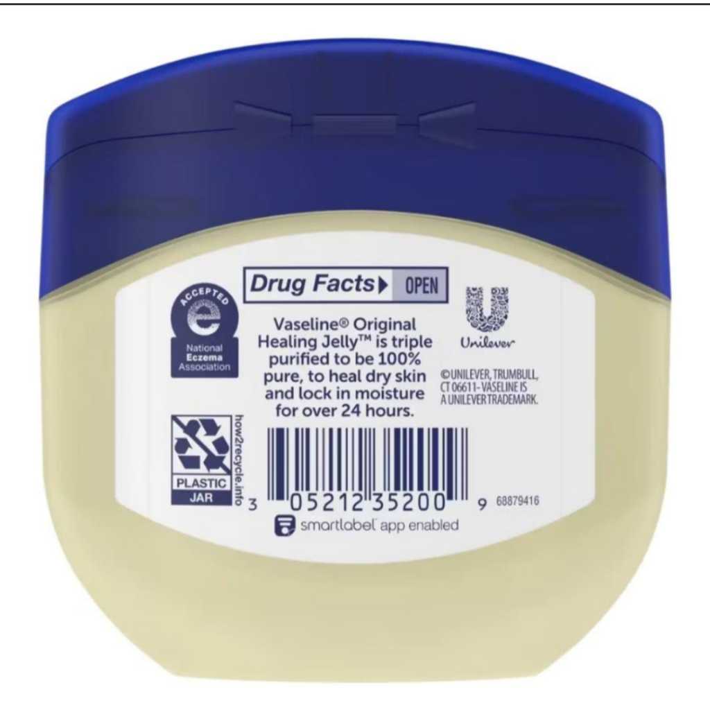 Vaseline 100% Pure Petroleum Jelly 49g original! Use diariamente todo o seu corpo, até mesmo o seu rosto. Cura a pele seca. Ajuda a proteger cortes menores, arranhões e queimaduras. Vaselina Petroleum Jelly Original é clinicamente comprovada para ajudar a curar a pele seca e danificada Vaselina Petroleum Jelly proporciona alívio da pele seca e protege pequenos cortes. Feito com 100% de vaselina pura. A pureza é garantida com nossa fórmula purificada tripla Vaselina vaselina atua como um hidratante para a pele seca, proporcionando alívio da pele. A vaselina pode ser usada como um hidratante para peles sensíveis Premiado nos EUA Selo de aceitação da National Eczema Association como adequado para pele sensível e ressecamento associada ao eczema • Fabricado com petrolato triplicado. Pureza garantida. • Melhor para assaduras, pele sensível ou pele seca
