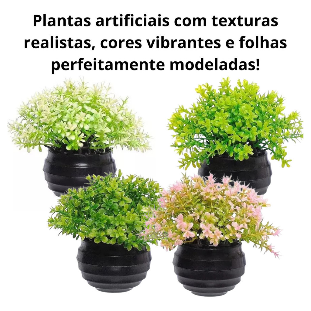 Vasinhos De Plantas Flores Artificial Decoração Kit 4 Vasos