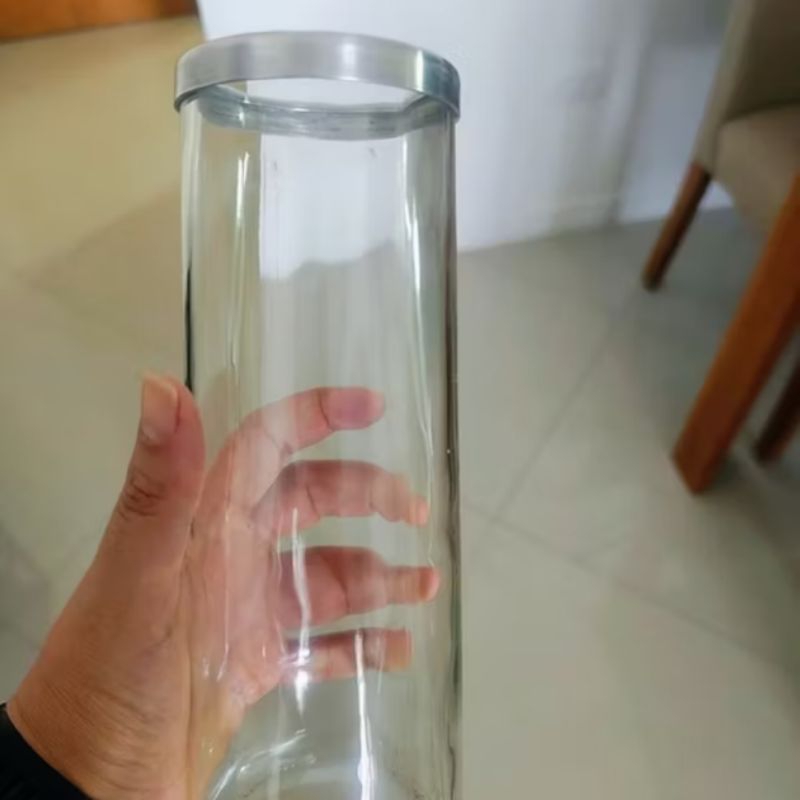 Vaso 21cm Vidro Artesanal Decoração Transparente com Borda de Alumínio Sala e Centro de Mesa