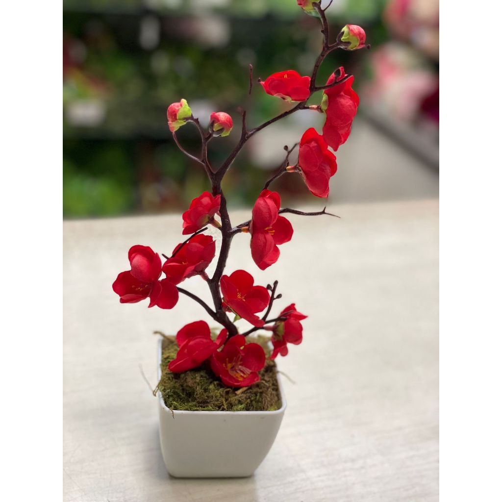 Vaso Arranjos Mini Cerejeira Artificial c /vaso, argila, musgo Ideal para decorações de mesa, banheiro