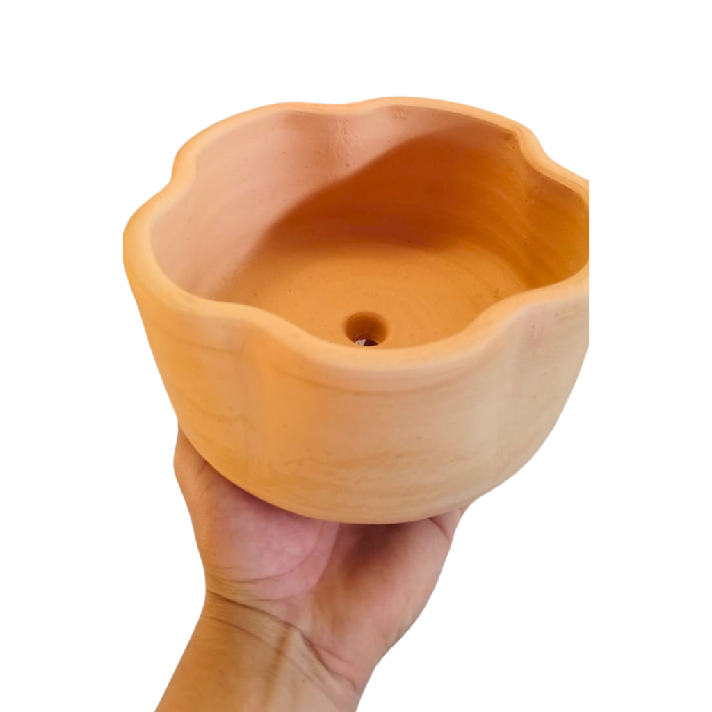 Vaso bacia de barro/cerâmica formato de florzinha para suculentas, cactos, terrários, decoração