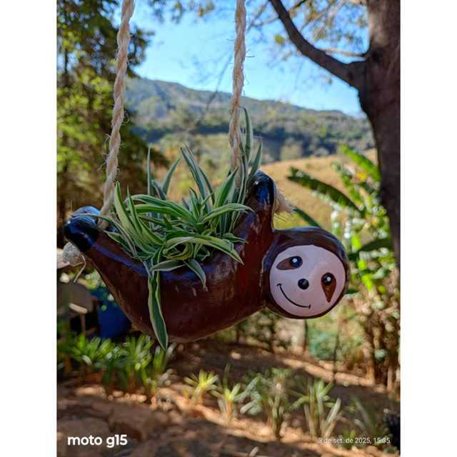 vaso preguiça para suculentas linda peça em cerâmica preguiça para suculentas em cerâmica ja vai com a cordinha para pendurar como na foto do anúncio nao acompanha arranjos!!! Medidas Altura : 8 CM Largura : 14 CM