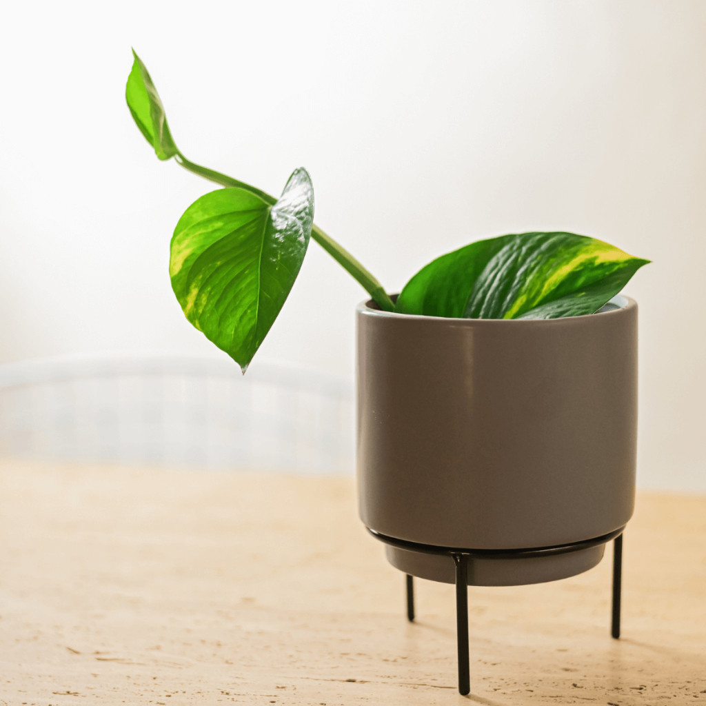 Vaso Cachepot Porcelana Com Suporte Ferro Preto Decoracao