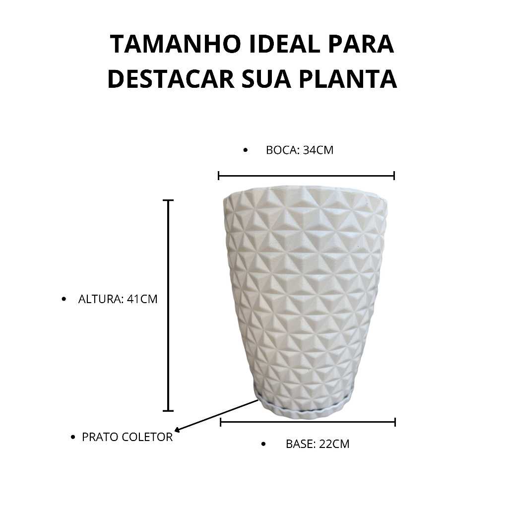 Vaso para planta polietileno redondo diamante para plantas M 🚀 ENVIO IMEDIATO Renove seu ambiente com este conjunto premium de vasos escovados e texturizados! Combinando design moderno, resistência e leveza, eles são perfeitos para realçar a beleza de qualquer espaço, seja interno ou externo. ✨ O que você recebe? ✔️ 1 Vaso Coluna Diamante M– Charme e sofisticação para suas plantas ✔️ Pratos coletores inclusos – Mais praticidade para você! 💎 Por que escolher nossos vasos? ✅ Estilo e requinte – Acabamento impecável que imita a sofisticação da cerâmica ✅ Versatilidade total – Para áreas internas e externas, valorizando qualquer ambiente ✅ Material ultra resistente – Feitos em polietileno de alta qualidade, suportam sol, chuva e impactos sem perder a cor ✅ Super leves e fáceis de transportar – Diferente dos vasos de cerâmica, sem risco de quebrar! ✅ Proteção garantida – Resistentes à umidade, maresia e não proliferam fungos e bactérias ✅ Durabilidade incomparável – Não desbotam, não racham e mantêm sua beleza por muito mais tempo ⚠️ Atenção: As cores podem apresentar pequenas variações conforme a tela do seu dispositivo. Plantas e flores das imagens são meramente ilustrativas. 🌟 Garanta agora o seu kit exclusivo e transforme sua decoração com elegância e praticidade!