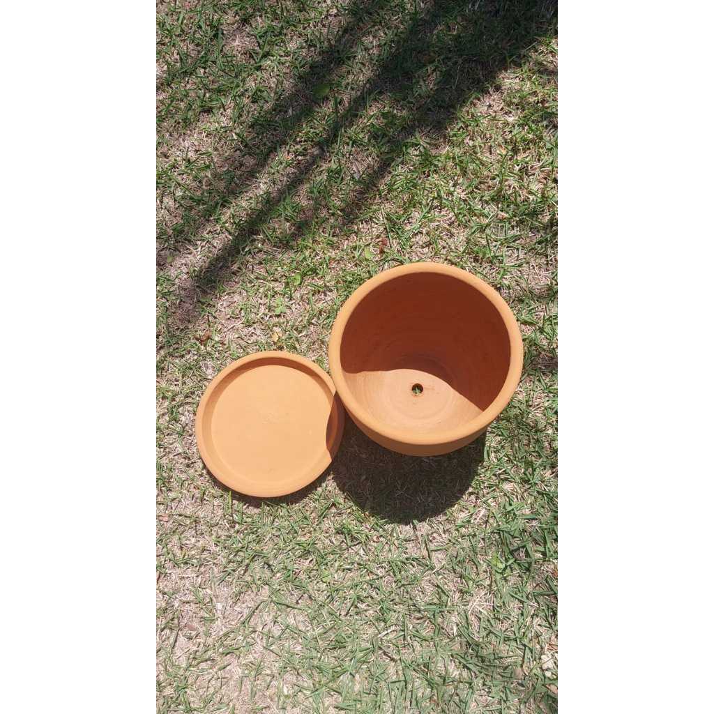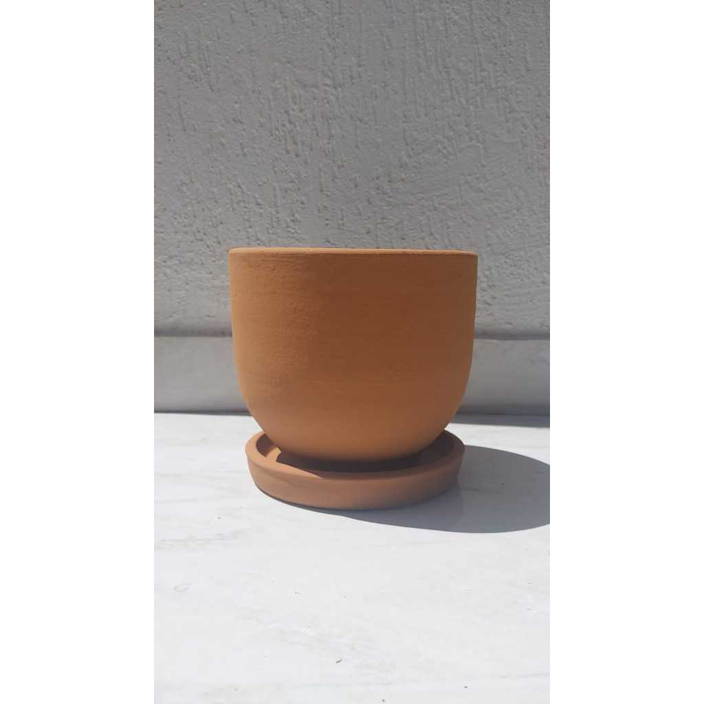 Material: argila barro natural Pode varear a cor devido ser feito em forno de alta temperatura Linda peça que ira elegantemente decorar seu espaço favorito Medidas vaso: 13,5 cm altura x 14,5 cm largura x 14,5 cm comprimento Medidas prato: 2 cm altura x 14 cm largura x 14,5 cm comprimento Vasos de cerâmicas são peças lindas vão dar muito estilo em sua casa CONFECCIONADA À MÃO