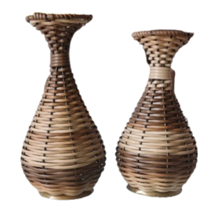 Vasos de mesa em junco nas medidas de 31 28 25 cm com a base dourada Vendidos em um dois ou 3 vasos selecionar o tamanho e cor