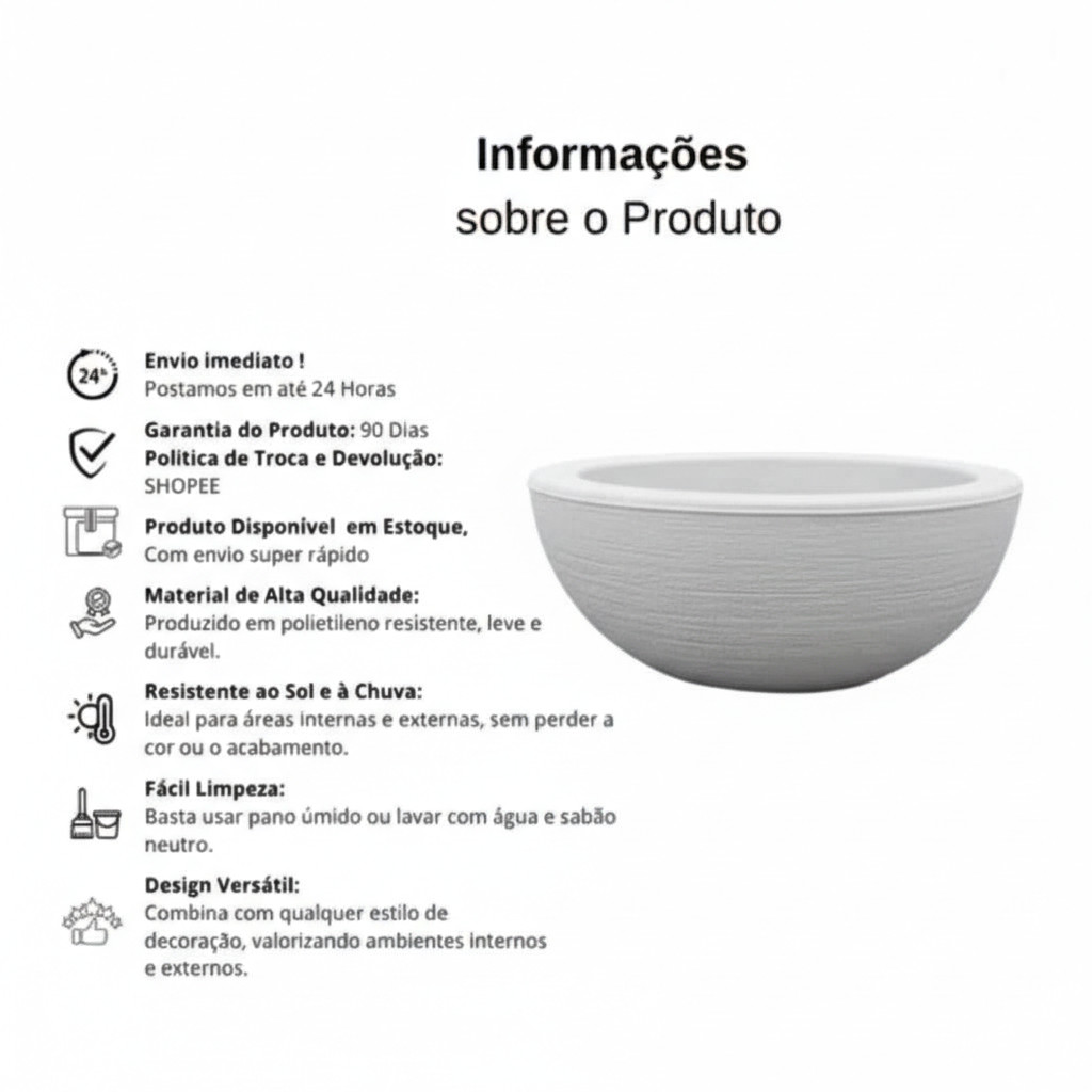Vaso de Planta Bacia Com Prato Escovado 2 Decorativo Cinza 🚀 ENVIO IMEDIATO Renove seu ambiente com este Vaso de Planta Bacia Com Prato Escovado 2 Decorativo Cinza! Combinando design moderno, resistência e leveza, eles são perfeitos para realçar a beleza de qualquer espaço, seja interno ou externo. ✨ O que você recebe? ✔️ 1 Vaso de Planta Bacia Com Prato Escovado 2 Decorativo Cinza ✔️ Prato coletor incluso – Mais praticidade para você! 📏 Dimensões do Vaso Coluna Diamante: Altura: 16cm Boca: 34cm Base: 20cm 💎 Por que escolher nossos vasos? ✅ Estilo e requinte – Acabamento impecável que imita a sofisticação da cerâmica ✅ Versatilidade total – Para áreas internas e externas, valorizando qualquer ambiente ✅ Material ultra resistente – Feitos em polietileno de alta qualidade, suportam sol, chuva e impactos sem perder a cor ✅ Super leves e fáceis de transportar – Diferente dos vasos de cerâmica, sem risco de quebrar! ✅ Proteção garantida – Resistentes à umidade, maresia e não proliferam fungos e bactérias ✅ Durabilidade incomparável – Não desbotam, não racham e mantêm sua beleza por muito mais tempo ⚠️ Atenção: As cores podem apresentar pequenas variações conforme a tela do seu dispositivo. Plantas e flores das imagens são meramente ilustrativas. 🌟 Garanta agora o seu vaso exclusivo e transforme sua decoração com elegância e praticidade!