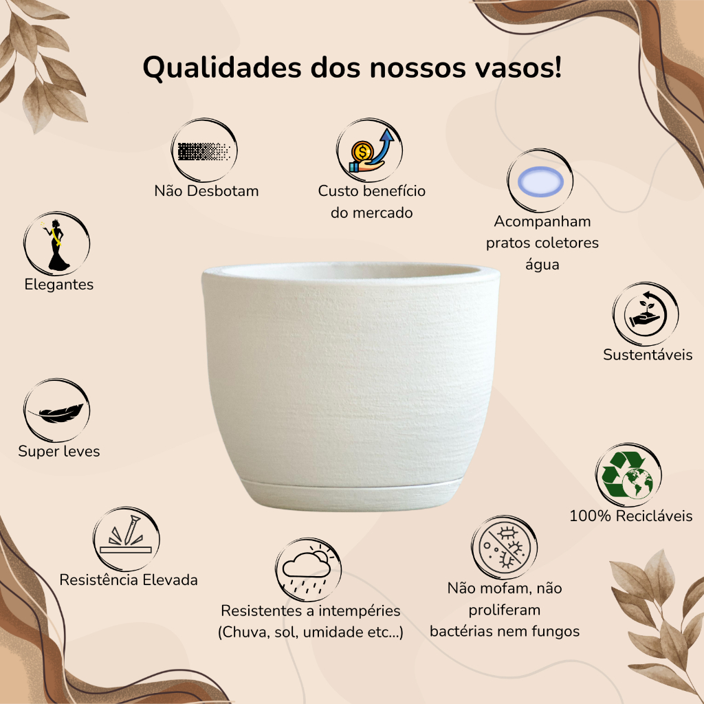 Vaso de Planta Decorativo Grande Bojo Redondo 27x34 P Grafiato Escovado com Prato em Polietileno