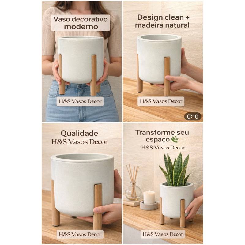 Vaso De Planta Mônaco Pequeno (30CM) // Cilíndrico com pé em Madeira Design Moderno