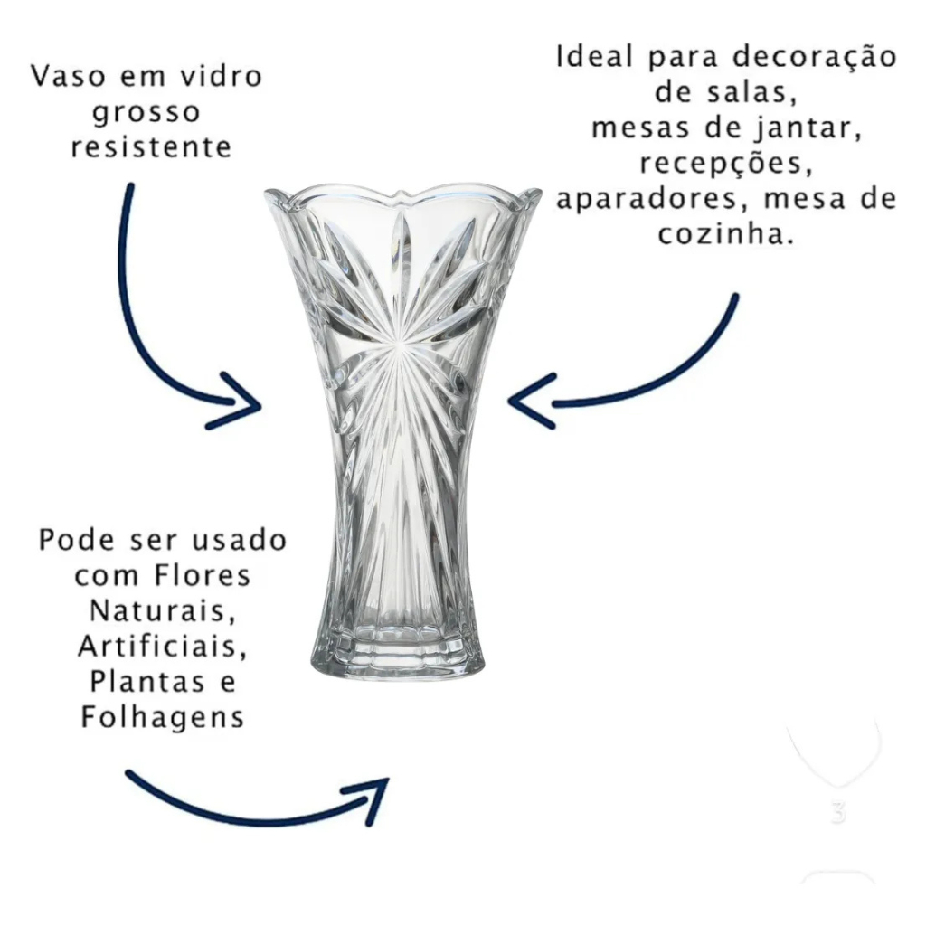 | Vaso De Vidro 24cm Decorativo Alto Relevo Resistente Arranjo Flores | R$ 20,90 | 28% | 5.0/5 | 2 mil |