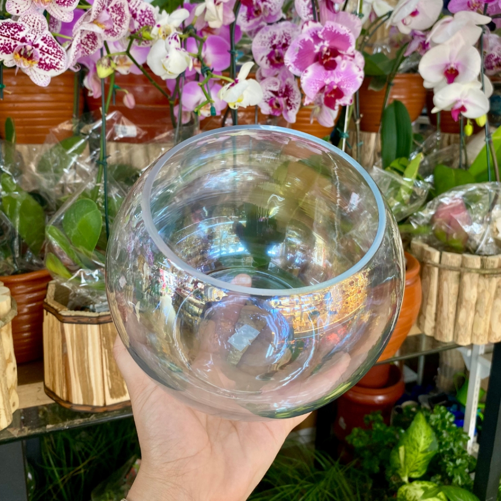 Vaso Decorativo de Vidro Redondo Aquário Terrário Plantas Multiuso Furta cor Transparente