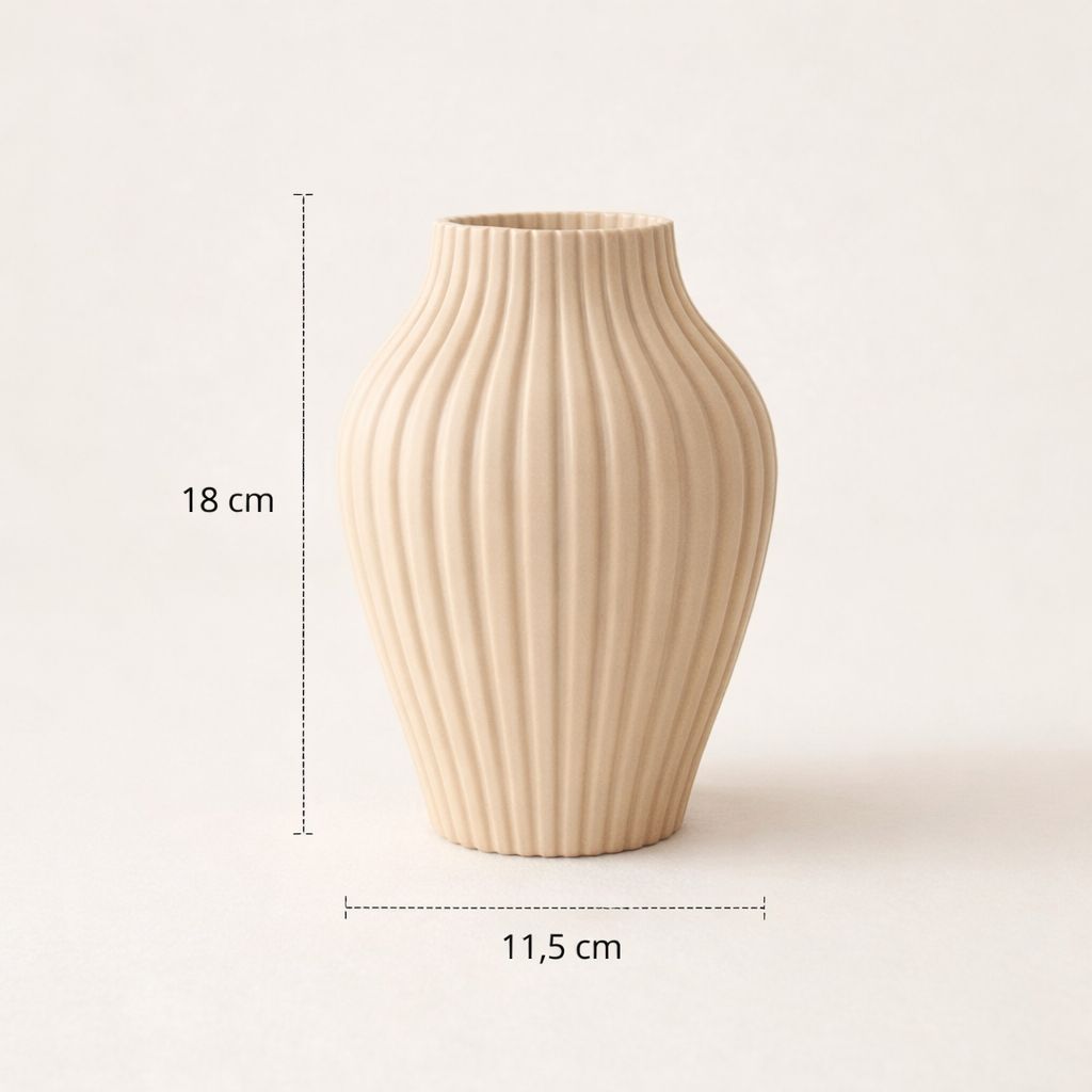 🏷️ VASO DECORATIVO MODERNO 18CM – DESIGN ELEGANTE E SOFISTICADO ✨ Envio rápido – Postagem em até 24 horas após a confirmação do pagamento. Transforme seu ambiente com um vaso moderno, minimalista e cheio de personalidade. Com design vertical texturizado e proporções elegantes, ele combina perfeitamente com salas, quartos, escritórios, aparadores e mesas de centro. ⸻ 📏 Medidas do Produto: • Altura: 18 cm • Largura: 11,5 cm • Material leve e resistente ⸻ 🎨 Variantes Disponíveis (Paleta Oficial Luli Store): • Branco neutro clean • Bege suave quente • Marrom chocolate sofisticado • Cinza claro estilo granito • Preto fosco elegante ⸻ ♻️ Sobre o Material – PLA Premium Este vaso é produzido em PLA (Ácido Polilático), um plástico premium de alta qualidade. ✔ Material resistente e durável ✔ Leve e de excelente acabamento ✔ Sustentável e biodegradável ✔ Produzido a partir de fontes renováveis ✔ Não tóxico ✔ Impressão 3D de fabricação própria ✔ Design exclusivo Diferente de cerâmica ou gesso, o PLA é: • Mais leve • Mais resistente a pequenas quedas • Não lasca com facilidade • Fácil de limpar (apenas pano seco ou levemente úmido) ⸻ 🌿 Indicação de Uso Ideal para: • Plantas artificiais • Trigo seco • Arranjos decorativos secos Perfeito para ambientes internos que valorizam decoração minimalista, moderna e sofisticada. 🖤 Um detalhe pode transformar todo o seu ambiente. Escolha a sua cor e eleve sua decoração com elegância. ⸻ ❓ Perguntas Frequentes Pode colocar água dentro? Não recomendamos. O vaso não é indicado para uso com água. Pode usar em ambiente externo? Não. É indicado apenas para ambientes internos. Ele é frágil como cerâmica? Não. Por ser feito em PLA premium, ele é mais resistente e leve. A peça é artesanal? Sim. Por se tratar de produção própria em impressão 3D, podem ocorrer pequenas variações naturais que não comprometem a qualidade. A planta acompanha o produto? Não. A planta é meramente ilustrativa.