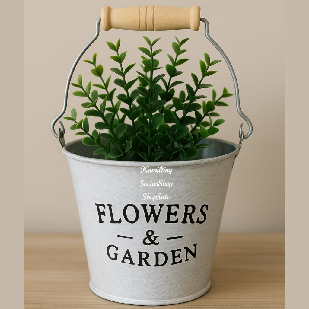 Vaso Garden Branco De Metal Com Alça de Madeira Vasinho Para Arranjos Decorativos