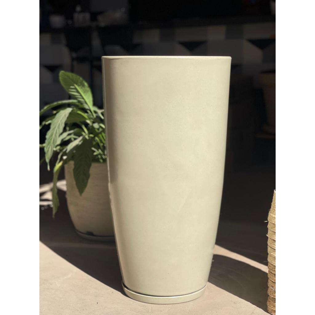 Vaso Grande Decorativo liso Para Plantas Coluna Redonda Polida e Marmorizada Com Prato N4(383)