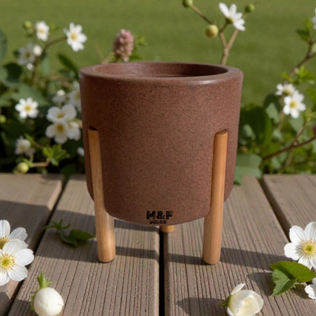 Vaso para planta Flor Monaco cilíndrico decorativo M, Com Pé em Madeira 37x35x35