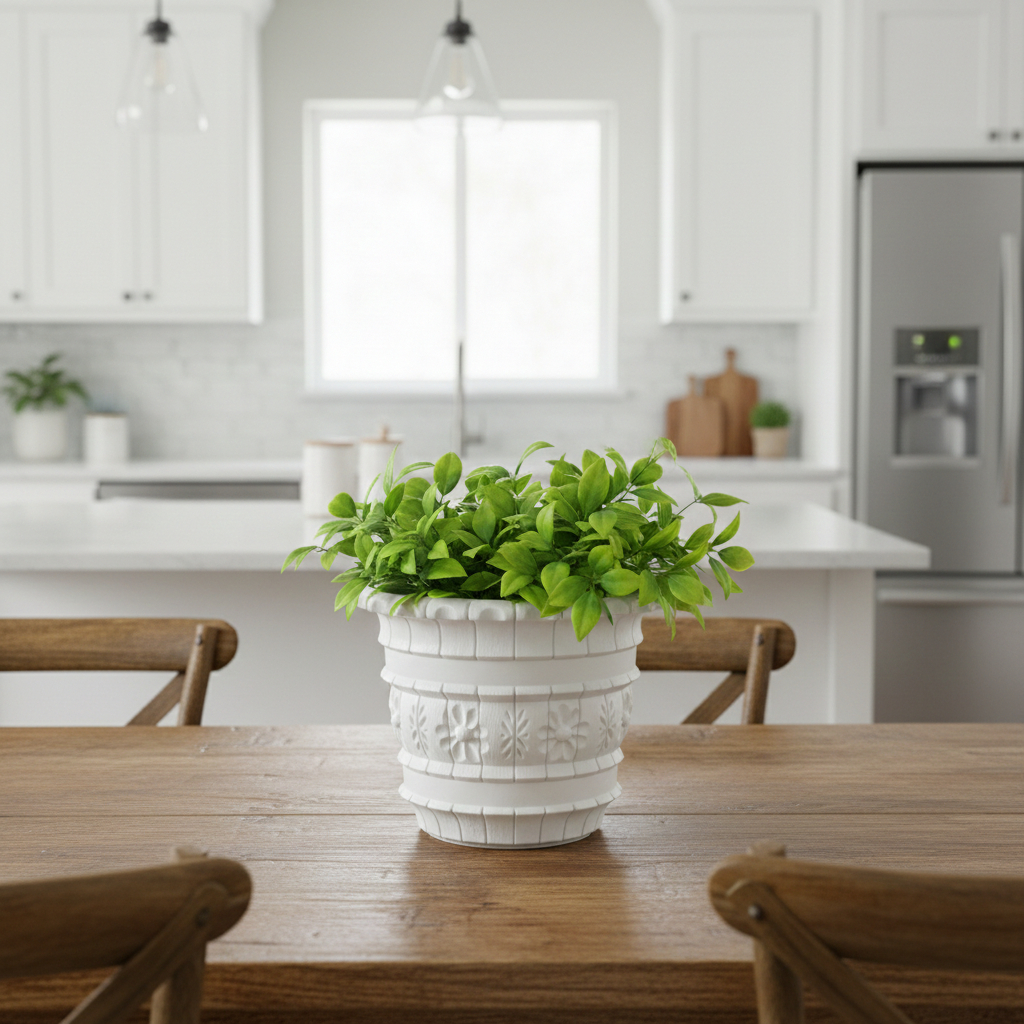 Transforme sua casa em um oásis de beleza com nosso deslumbrante vaso floral de 4 litros! Com seu design elegante e capacidade generosa, este vaso é o toque perfeito para realçar qualquer ambiente. Adicione um toque de frescor e cor à sua vida com este acessório encantador. Não perca a chance de elevar a sua decoração para outro nível! Características do Produto: - Vaso Floral ideal para Plantas,Flores,Arranjos,Etc. - Capacidade de 4 litros - Disponível nas cores Preto e Branco Dimensões do Produto: - Altura: 18,5cm - Diâmetro Boca: 21cm - Diâmetro da Base: 13cm