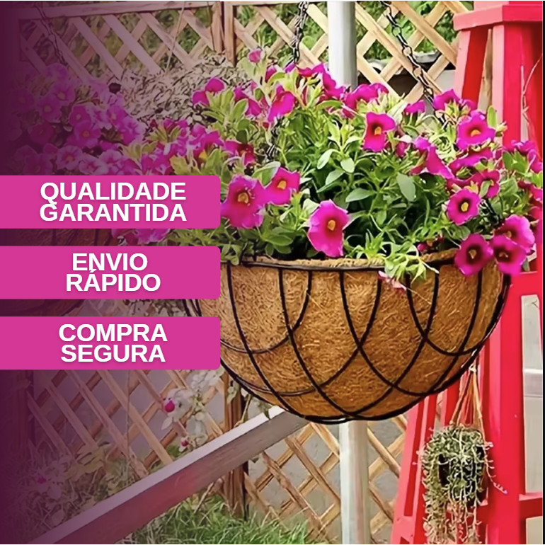 **VASO SUSPENSO FIBRA DE COCO COM SUPORTE DE FERRO nunca sai de moda! ideal para quem ama jardinagem e quer dar um ar mais elegante e natural ao ambiente. - 20 cm - 25 cm - 30 cm - 35 cm