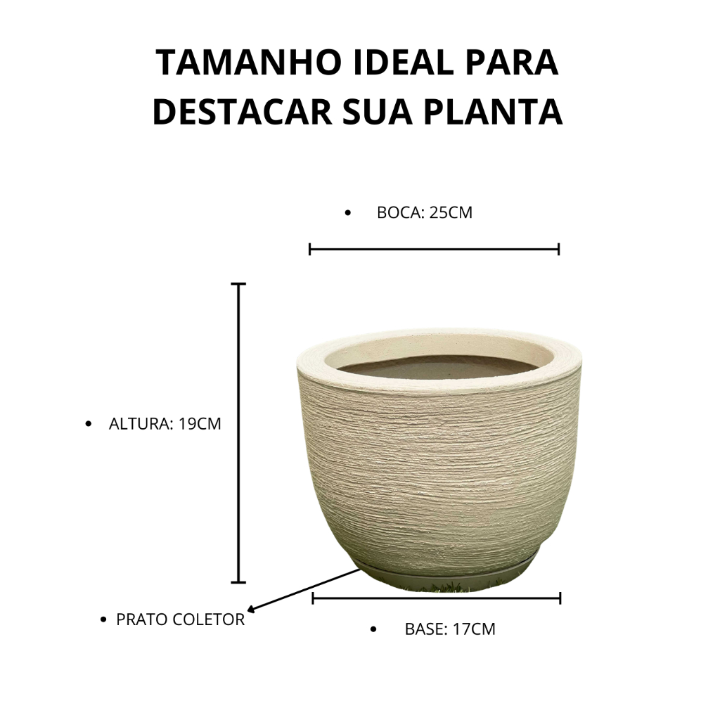 Vaso para plantas Polietileno redondo com prato escovado bege 🚀 ENVIO IMEDIATO GARANTIA DE 90 DIAS !! Renove seu ambiente com este conjunto premium de vasos escovados e texturizados! Combinando design moderno, resistência e leveza, eles são perfeitos para realçar a beleza de qualquer espaço, seja interno ou externo. ✨ O que você recebe? ✔️ 1 Vaso Bojo Pequeno – Charme e sofisticação para suas plantas ✔️ Pratos coletores inclusos – Mais praticidade para você! Dimensões: - Altura: 19cm - Largura maior (Boca): 25cm - Profundidade menor (Fundo): 17cm - Peso: 0,4Kg 💎 Por que escolher nossos vasos? ✅ Estilo e requinte – Acabamento impecável que imita a sofisticação da cerâmica ✅ Versatilidade total – Para áreas internas e externas, valorizando qualquer ambiente ✅ Material ultra resistente – Feitos em polietileno de alta qualidade, suportam sol, chuva e impactos sem perder a cor ✅ Super leves e fáceis de transportar – Diferente dos vasos de cerâmica, sem risco de quebrar! ✅ Proteção garantida – Resistentes à umidade, maresia e não proliferam fungos e bactérias ✅ Durabilidade incomparável – Não desbotam, não racham e mantêm sua beleza por muito mais tempo ⚠️ Atenção: As cores podem apresentar pequenas variações conforme a tela do seu dispositivo. Plantas e flores das imagens são meramente ilustrativas. 🌟 Garanta agora o seu kit exclusivo e transforme sua decoração com elegância e praticidade!