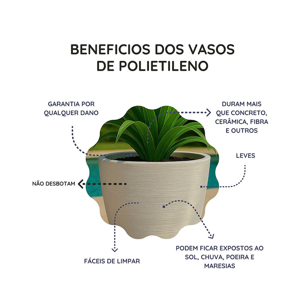 Vaso para plantas Polietileno redondo com prato escovado bege 🚀 ENVIO IMEDIATO GARANTIA DE 90 DIAS !! Renove seu ambiente com este conjunto premium de vasos escovados e texturizados! Combinando design moderno, resistência e leveza, eles são perfeitos para realçar a beleza de qualquer espaço, seja interno ou externo. ✨ O que você recebe? ✔️ 1 Vaso Bojo Pequeno – Charme e sofisticação para suas plantas ✔️ Pratos coletores inclusos – Mais praticidade para você! Dimensões: - Altura: 19cm - Largura maior (Boca): 25cm - Profundidade menor (Fundo): 17cm - Peso: 0,4Kg 💎 Por que escolher nossos vasos? ✅ Estilo e requinte – Acabamento impecável que imita a sofisticação da cerâmica ✅ Versatilidade total – Para áreas internas e externas, valorizando qualquer ambiente ✅ Material ultra resistente – Feitos em polietileno de alta qualidade, suportam sol, chuva e impactos sem perder a cor ✅ Super leves e fáceis de transportar – Diferente dos vasos de cerâmica, sem risco de quebrar! ✅ Proteção garantida – Resistentes à umidade, maresia e não proliferam fungos e bactérias ✅ Durabilidade incomparável – Não desbotam, não racham e mantêm sua beleza por muito mais tempo ⚠️ Atenção: As cores podem apresentar pequenas variações conforme a tela do seu dispositivo. Plantas e flores das imagens são meramente ilustrativas. 🌟 Garanta agora o seu kit exclusivo e transforme sua decoração com elegância e praticidade!