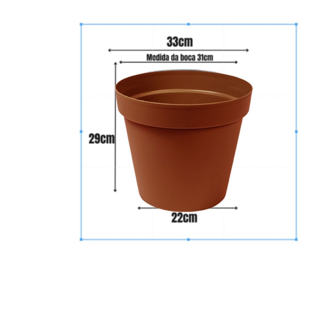 Vaso feito em plástico, resistente e prático, para os mais diversos tipos de plantas. Evita o acúmulo de sujeiras indesejáveis no chão e o escoamento de água para os pratos. Utilizado para arranjos, decoração, plantio de hortaliças, temperos e verduras, é produzido com material resistente à chuva e sol. Também indicado para ambientes internos.