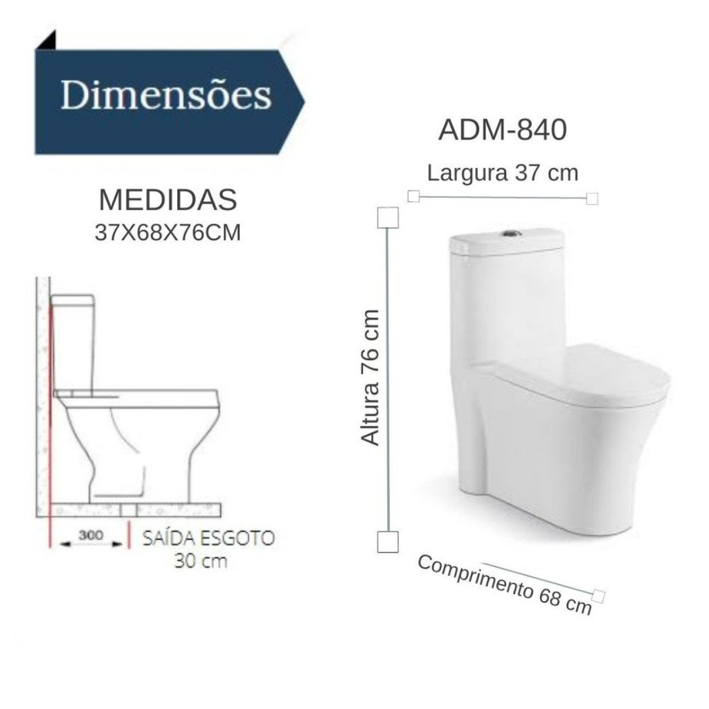 Vaso Sanitário Monobloco Assento Soft Close Adm840 Adamas