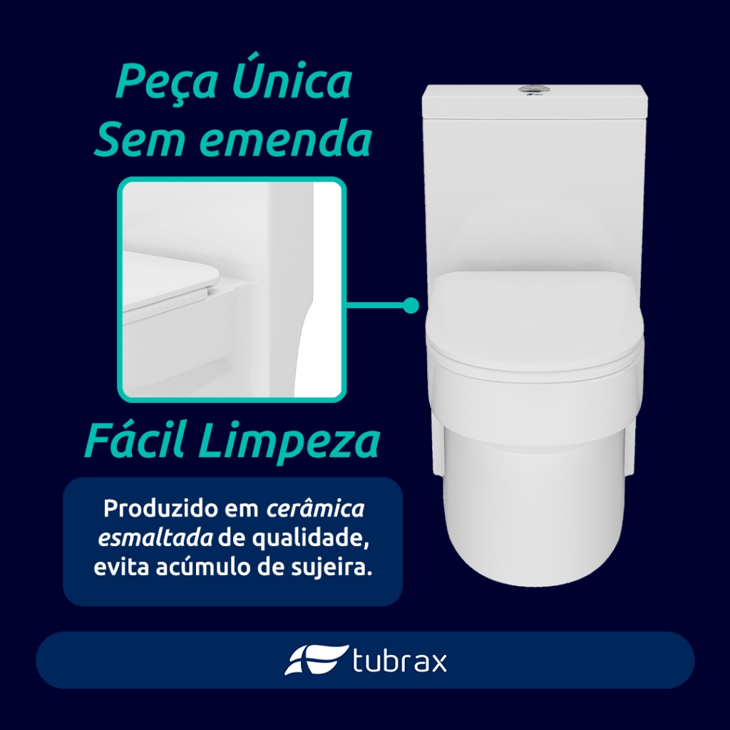 VASO MONOBLOCO MODELO NAVIES MARCA TUBRAX Vaso sanitário com produção de alta qualidade e Design inovador, feito em peça única! Deixe o seu lavabo lindo e com aspecto de requinte com o modelo Navies. Todos os produtos Tubrax são feitos com atenção em todos os detalhes, e o VASO SANITÁRIOS Modelo NAVIES não poderia ser diferente. Pensando no meio ambiente, nosso produto possui sistema de descarga ecológica com duplo comando. Em modelos comuns a descarga pode utilizar até 12 litros de água, enquanto o modelo Navies gasta apenas 3 Litros (descarga curta) ou 6 Litros (descarga longa). Todo o nosso mecanismo de descarga possui Sistema de Alta Durabilidade, com mais de 100.000 ciclos de acionamentos comprovados. Outro diferencial aplicado em nosso produto é o sistema com Amortecedor Anti-Ruído para o Assento, proporcionando assim, silencio em todas as descidas da tampa. Para um alto poder de limpeza, utilizamos o sistema conhecido internacionalmente Vortex® que faz um verdadeiro Turbilhão de água, sem o barulho habitual de descargas e com alto poder de sucção. ATENÇÃO: Todas as dimensões estão disponíveis nas imagens do anúncio!! Obs: Leves alterações na coloração e acabamento podem acontecer entre diferentes lotes do produto. ESPECIFICAÇÕES TÉCNICAS: - Marca: Tubrax - Modelo: Navies - Referência do Modelo: VAB0004 - Cor: Branca - Utilização: Banheiro / Lavabo - Tipo de saída de esgoto: Vertical - Sistema Vortex® de Descarga - Assento com fechamento Amortecedor Anti-Ruído - Possui Jato Plus - Diâmetro tubulação compatível: 100 mm - Distância da parede até eixo tubulação: 30 cm - Acabamento: Esmaltado - Material: Cerâmica - Conteúdo da embalagem: 1 Vaso Monobloco com válvulas instaladas; 1 Assento com sistema Anti-Ruído; 1 Anel de vedação. - Manual: Incluso no produto (Português) - Peso bruto (com embalagem): 55 Kg - Garantia: 12 meses Porcelana, 3 meses para o assento, 6 meses para sistema de descarga.