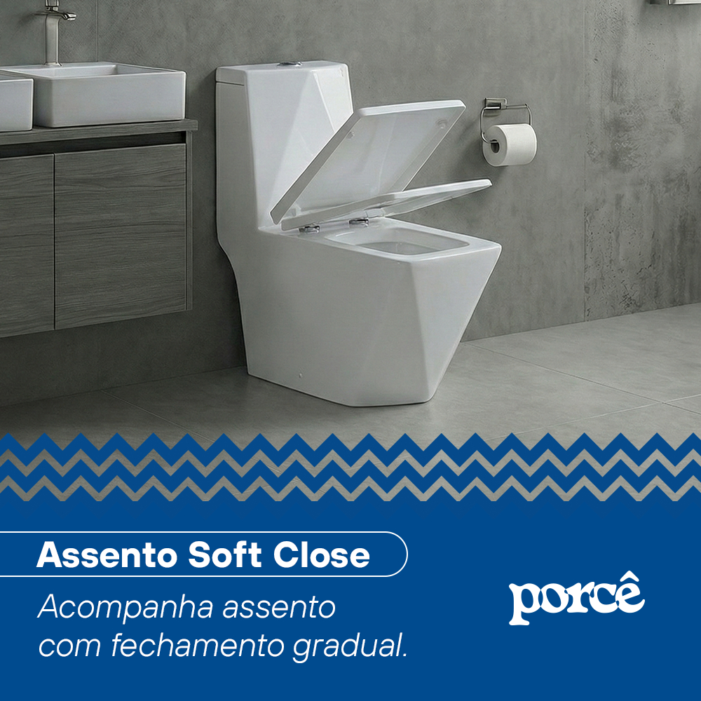 VASO SANITÁRIO MONOBLOCO PORCÊ SUPREMUS BRANCO (PVS53MBSFA-BR) O Vaso Sanitário Monobloco Porcê Supremus foi criado para quem busca um design contemporâneo e imponente no banheiro, sem abrir mão de eficiência e tecnologia. Seu visual em formas geométricas, com linhas retas e estrutura totalmente integrada, traz um toque moderno que transforma o ambiente e valoriza projetos arquitetônicos mais atuais. Por ser monobloco, o Supremus facilita a limpeza e oferece acabamento mais uniforme, sem frestas entre vaso e caixa acoplada. A descarga sifônica com jato duplo garante alto desempenho, proporcionando remoção eficiente dos resíduos com menor consumo de água, sendo ideal para quem deseja unir estética premium e funcionalidade. A tampa com fechamento suave agrega conforto ao dia a dia, evitando impactos bruscos e reduzindo ruídos. Já a cerâmica esmaltada assegura brilho duradouro, proteção contra manchas e maior praticidade na manutenção. O Supremus é a opção perfeita para quem busca um vaso sanitário moderno, robusto e eficiente. Principais Características Design contemporâneo geométrico: linhas retas e triangulares proporcionam um visual sofisticado e exclusivo, perfeito para banheiros modernos e projetos arquitetônicos de alto padrão. Peça única monobloco: mais fácil de limpar, sem frestas e com acabamento visualmente uniforme. Descarga eficiente e econômica: sistema de jato duplo com opções 3/6 litros para redução do consumo de água. Conforto absoluto: tampa com fechamento suave, evitando ruídos e aumentando a durabilidade. Cerâmica esmaltada: maior resistência, brilho prolongado e proteção contra sujeira e manchas. Tecnologia sifônica: sucção mais potente e eficiente na remoção dos resíduos. Dúvidas Frequentes 1. O fechamento da tampa é suave? Sim, a tampa possui sistema anti-ruído com queda amortecida. 2. A instalação é compatível com saída vertical? Sim, o Supremus utiliza saída de esgoto vertical e instalação padrão S-trap 300 mm. 3. A descarga é econômica? Sim. O botão duplo permite escolher entre 3 ou 6 litros, garantindo economia sem perder desempenho. 4. O método de descarga é sifônico? Sim, esse modelo utiliza sistema sifônico com jato duplo, oferecendo maior potência e eficiência. 5. O Vaso Supremus é para uso comercial? Não. O modelo é indicado somente para uso residencial. Especificações Técnicas Marca: Porcê Modelo: Supremus Branco Acompanha Tampa do Assento: Sim Distância Máxima do Esgoto: S-trap 300 mm Volume de Descarga: 3/6 L Saída de Esgoto: Vertical Tipo de Botão de Descarga: Duplo Estrutura: Peça Única (Monobloco) Características: Jato Duplo Cerâmica: Esmaltado Sistema Anti-ruído ao Descer a Tampa: Sim Método de Descarga: Sifônico Cor: Branco Tipo: Vaso sanitário monobloco sifônico Peso Bruto: 55 kg Peso Líquido: 53 kg Dimensões do Produto (P × A × L): 67 × 77,5 × 39 cm Dimensões da Embalagem (P × A × L): 45 x 114,3 x 35 cm Garantias: • 1 ano para a porcelana • 3 meses para o assento • 3 meses para o sistema de descarga