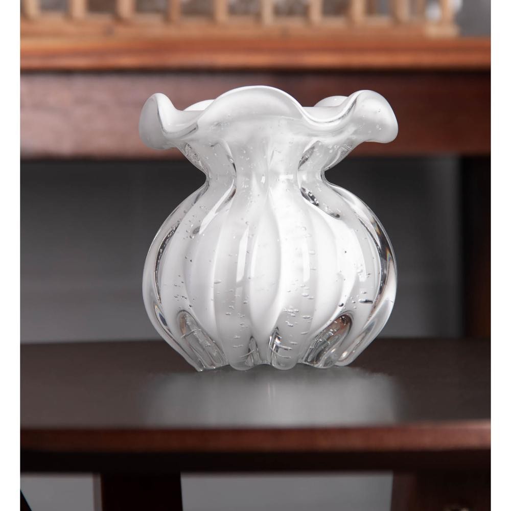 Vaso Wolff Italy de Vidro Branco Leitoso 10cm x 11cm