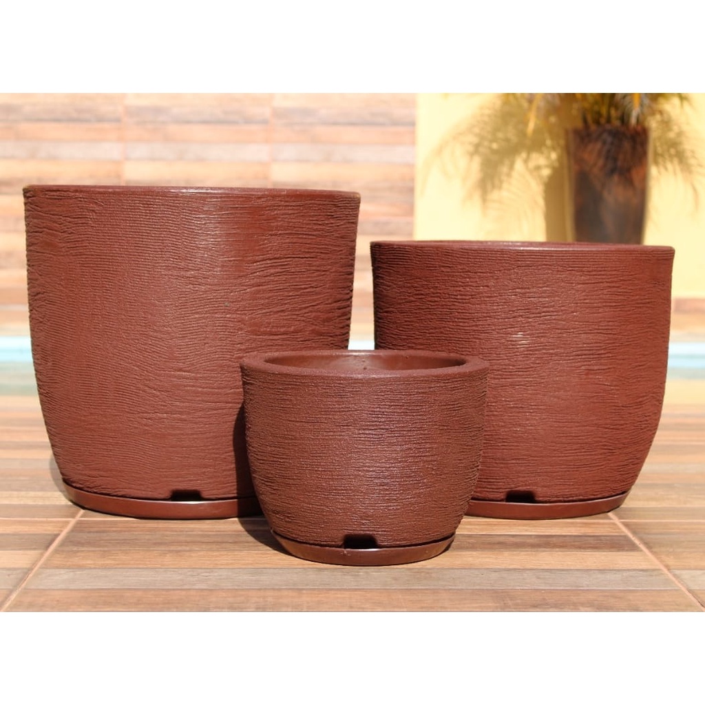 Vasos Decorativo para Plantas Kit com 3 N1 N2 N3 Redondo Escovado com Prato