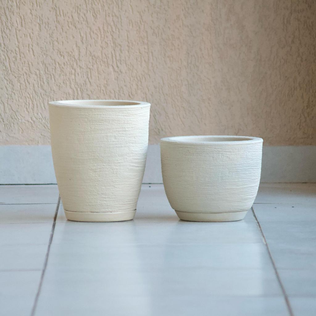 Vasos para Plantas Cone Bojo Grafiato Escovado Texturizado com Prato em Polietileno