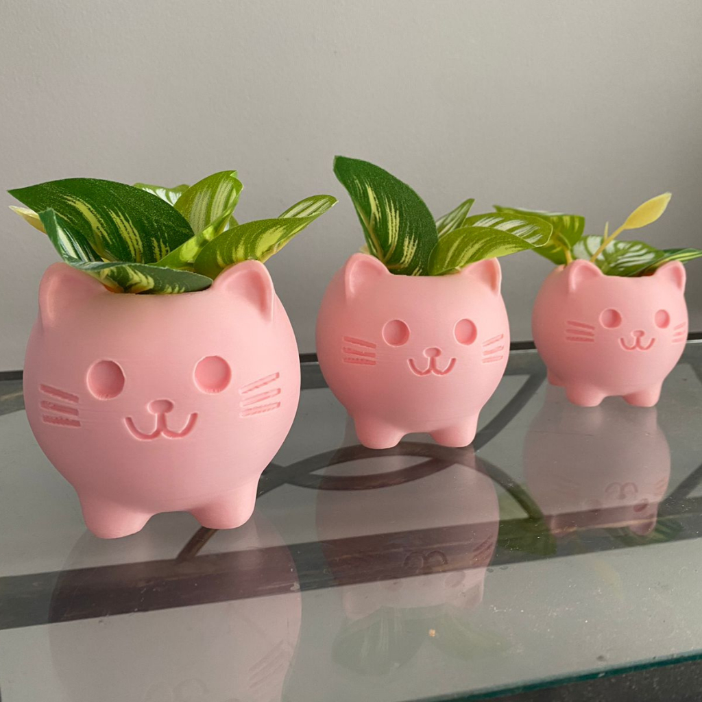 Vasos Pink Cat Decoração Para Sua Casa - Kit com 3 - Rosa