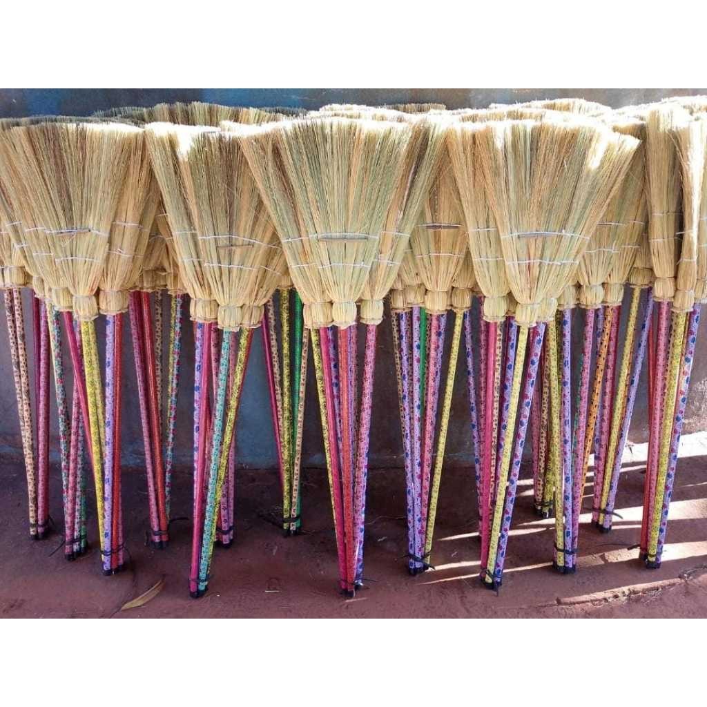 Vassoura Caipira De Palha Artesanal Com Cabo Kit com até 3un, Alta Durabilidade - Vassoura De Bruxa