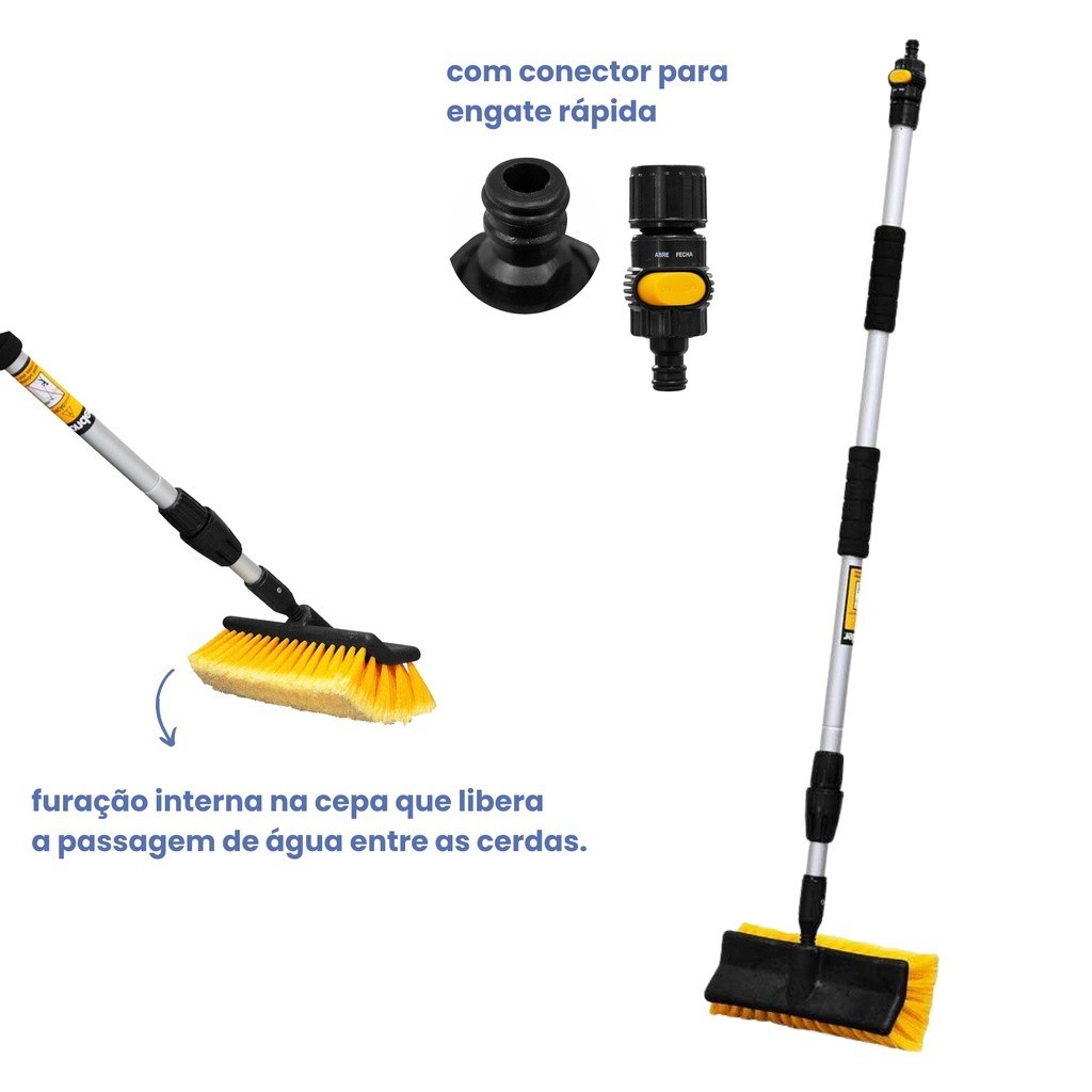Vassoura Extensível Com Entrada De Água Lavar Placa Solar Fotovoltaica Com Jato D'agua Vonder
