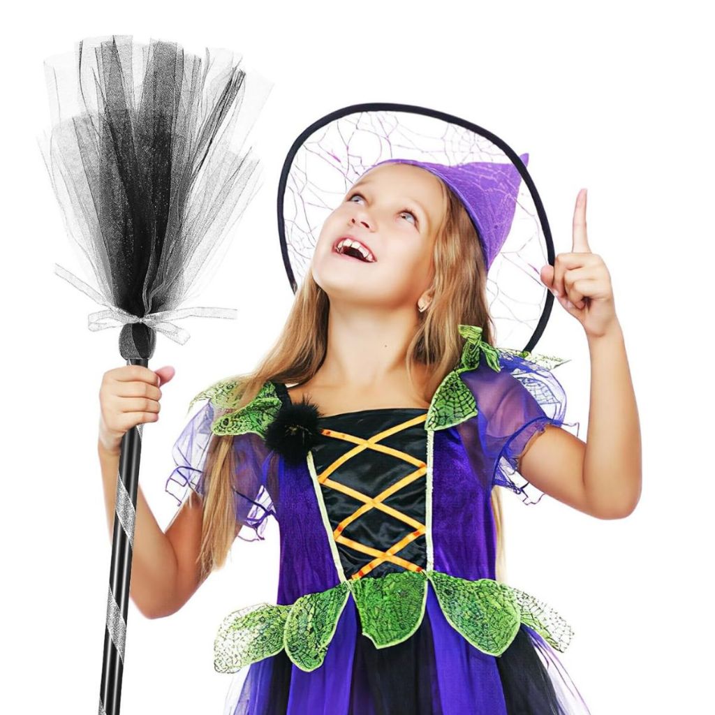 Vassoura Halloween Decoração Bruxas 96cm Acessórios Dia das Bruxa Fantasia Cosplay Infantil Enfeite