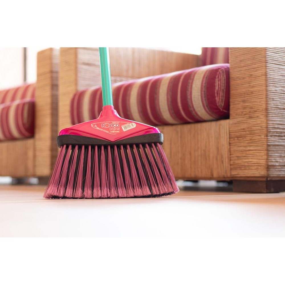 Vassoura Original Com Cabo Noviça Bettanin - Especial Movimento Dourado. A vassoura original possui tecnologia multiuso duo, o produto traz cerdas macias na parte externa e cerdas firmes na parte interna. É ideal para a varrição de todos os tipos de pisos. Traz a exclusiva tecnologia max protect, em que o cabo é produzido em aço com revestimento hermeticamente fechado, trazendo ultra proteção contra quebra e oxidação, e oferecendo maior durabilidade ao produto. Cores disponível nas cores cereja e tiffany. Cor do produto enviado conforme disponibilidade de estoque. Caso necessite de cor específica, consulte nosso atendimento.