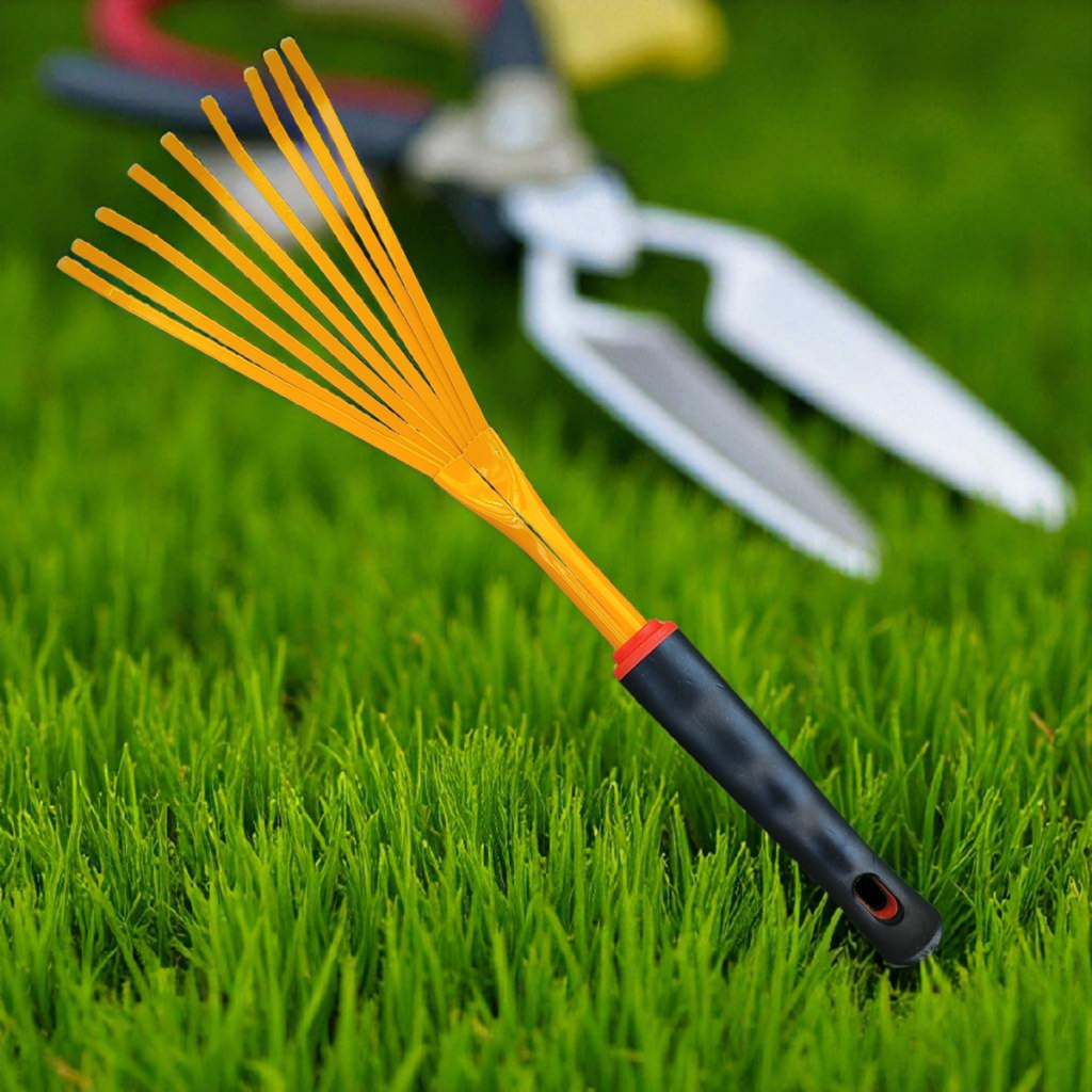 Vassoura Rastelo Metalico Jardinagem Ancinho 22 dentes Metálicos Varrer Grama Folhas + Mini Vassoura