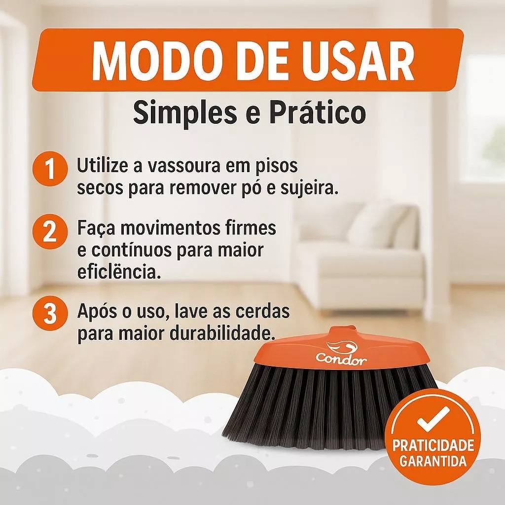 Vassouras Condor SEM CABO Original Limpeza Multiuso Uso Interno Externo Vassoura Coisas de Casa