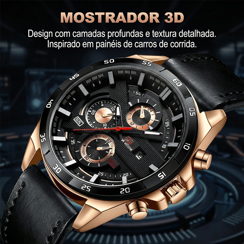 VAVA VOOM Relógio De Pulso Masculino Design 3D Racing Carro Esporte Fino Negócios À Prova D’água