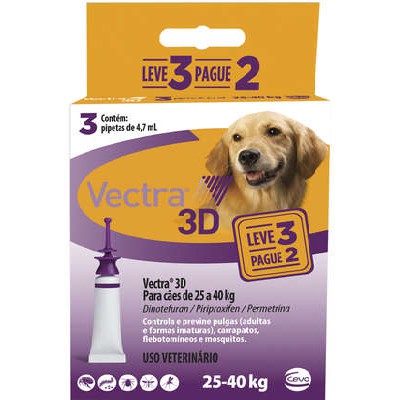 Vectra 3D 4,7mL (25-40Kg) C/ 3 Pipetas - Antipulgas e Carrapatos P/ Cães