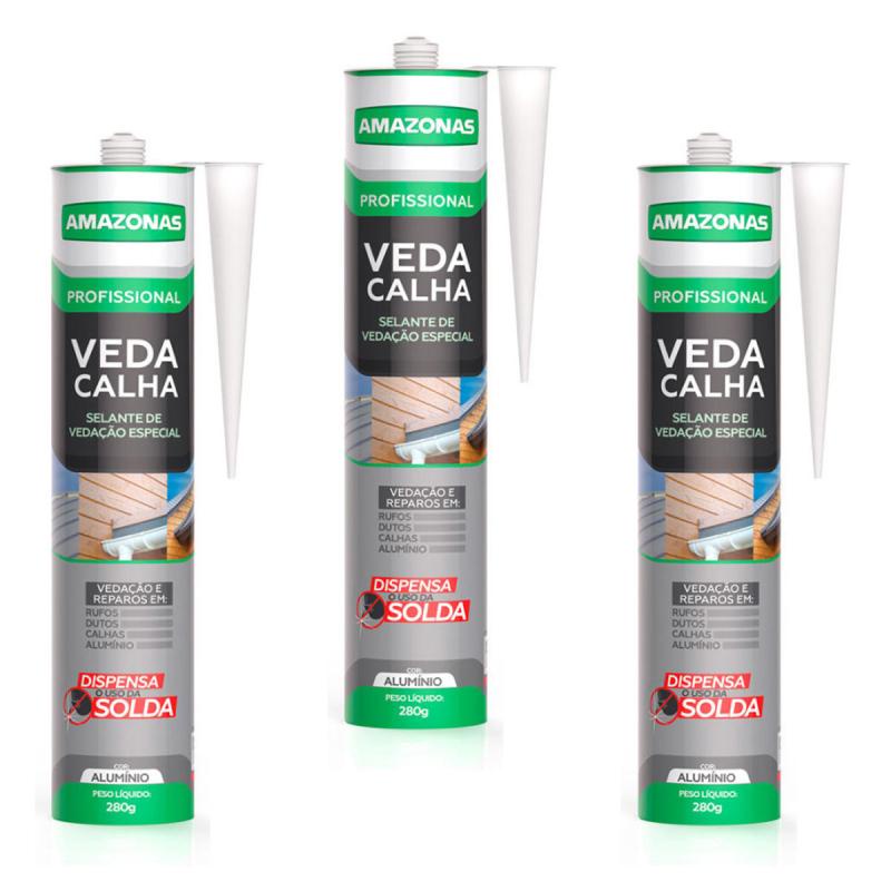 Combo Com 3 Veda Calha 280 GR / Cada Alumínio AMAZONAS Adesivo vedante à base de polímeros sintéticos especialmente desenvolvidos para vedação de calhas e rufos. A cura acontece quando da eliminação total dos solventes, formando um composto polimérico de alta resistência às intempéries e fungos, com ótima força de coesão e resistência à abrasão. União de calhas de zinco, dispensando o uso da solda. DADOS TÉCNICOS: Quantidade na embalagem: 3 unidades (280 gramas cada). Cor: Alumínio. Embalagens: Cartucho 280 gramas. Ref: 188131 Marca: Amazonas *Imagens meramente ilustrativas.