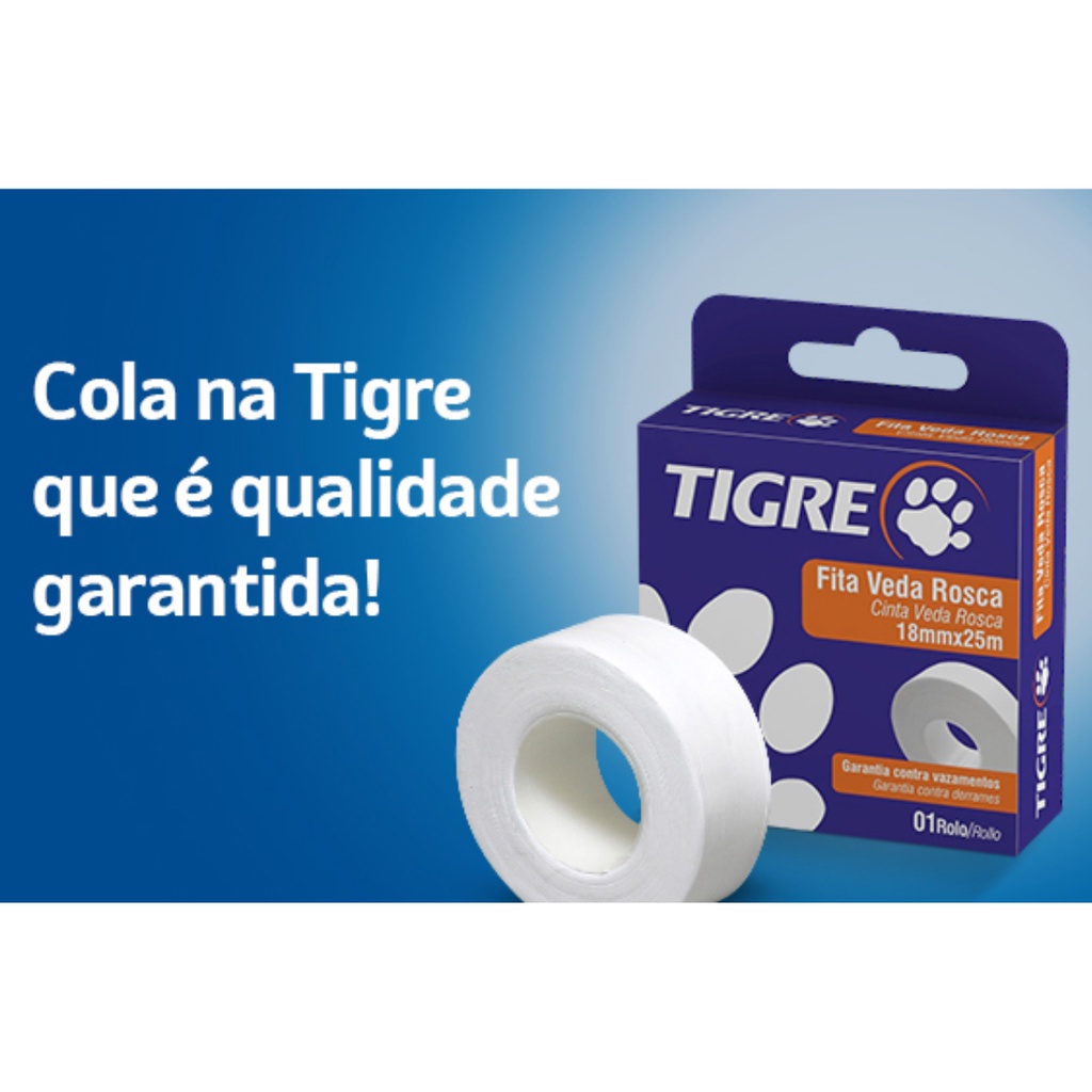 Somos a BZ DISTRIBUIDORA! Nosso compromisso é sempre lhe oferecer um excelente atendimento com muito comprometimento e seriedade. Trabalhamos com grandes marcas do mercado da construção civil. TODOS OS PRODUTOS SÃO NOVOS E ACOMPANHAM NOTA FISCAL. Qualquer dúvida entre em contato conosco, será um prazer atendê-lo! ---------------------------------------------------------------------- Produto de qualidade tigre! Vedação completa, fácil de aplicar. A Fita Veda Rosca Tigre é usada para vedar juntas roscáveis (PVC, CPVC ou metal), tanto para instalações de água fria como quente. Fácil de aplicar, ideal para eliminar as folgas existentes entre as roscas. Escolha entre as opções disponíveis: rolos de 10m, 25m
