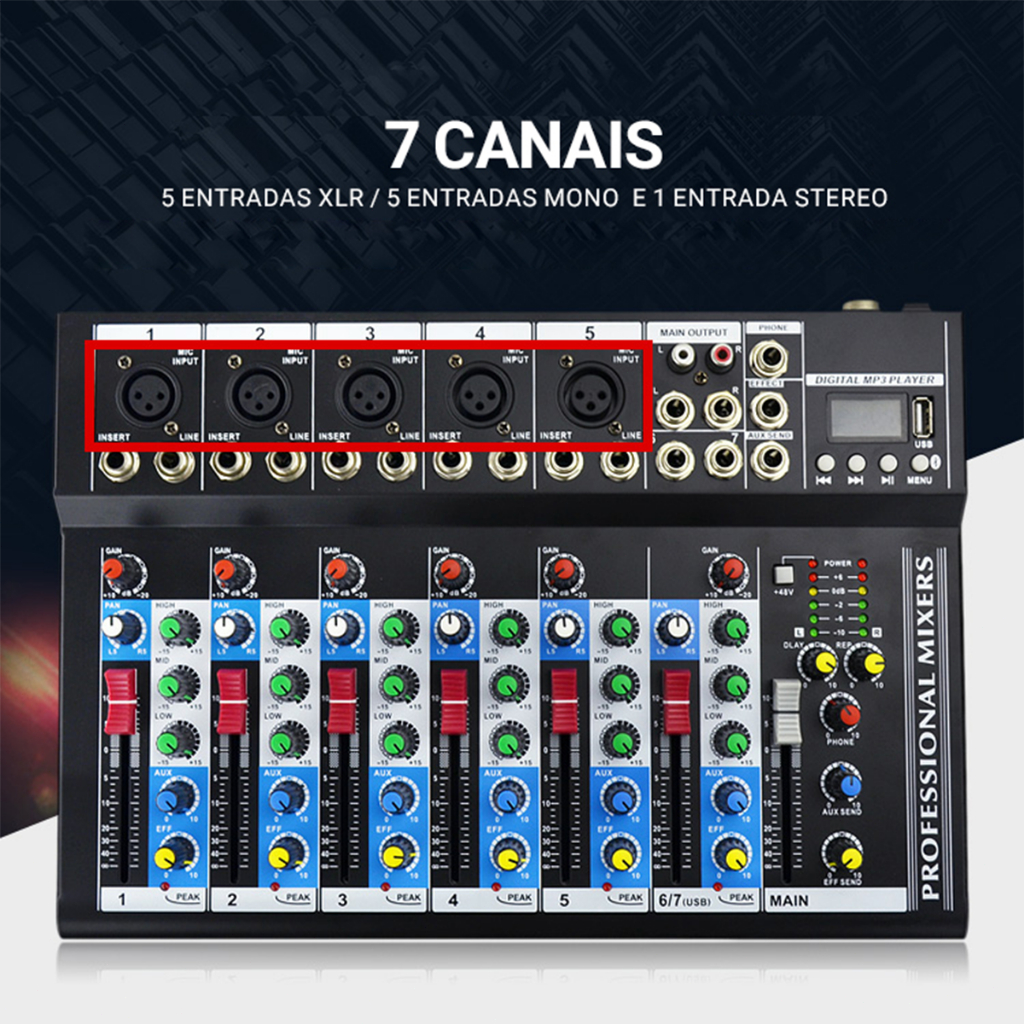 VEDO 7 Canais Profissional Mixer Portátil Mixagem De Som Console Play Record Reprodução De Computador Mini Mixer