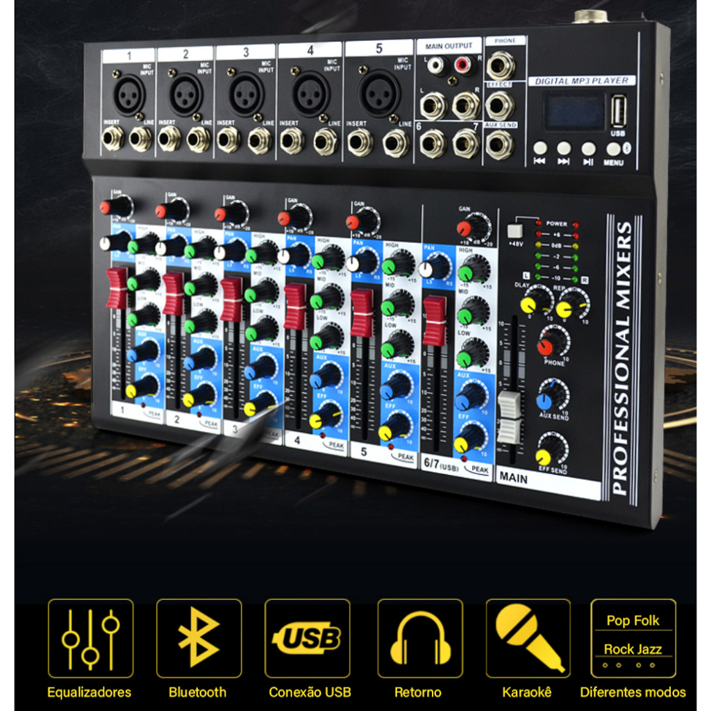 VEDO Console De Mistura Portátil 7 Canais Soundcard USB Play Record Reprodução Do Computador Mini Mixer De Áudio