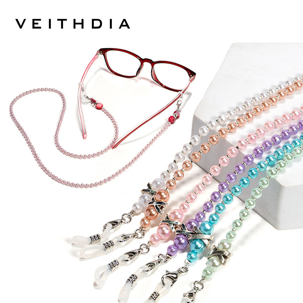 VEITHDIA Retro Pérola Cordão Óculos Corrente Com Decorações De Artificial Elegante Artesanal Rosqueamento Cabo Para