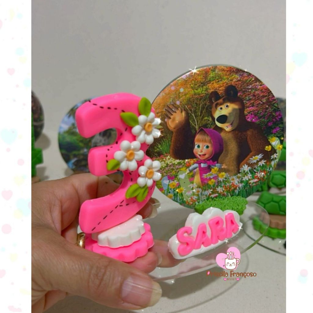 Vela aniversario em biscuit masha e o urso, vela personalizada, topo de bolo, numeros de 1a 9
